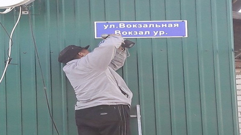 В п.ж.-д.ст. Бурундуки установили таблички наименований улиц на двух государственных языках.