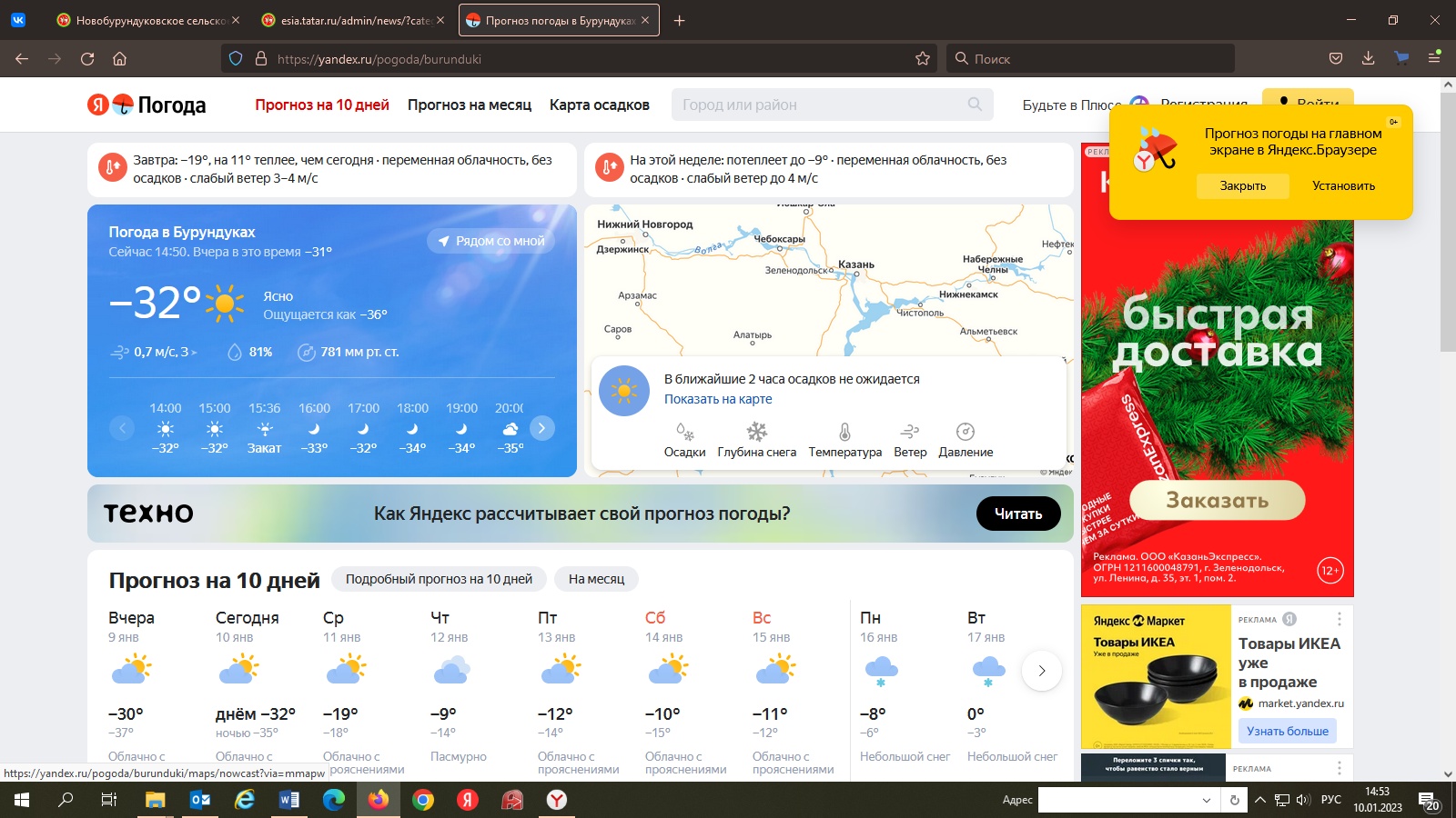 Информация о погоде в п.ж.-д.ст. Бурундуки на ближайшие 10 дней.